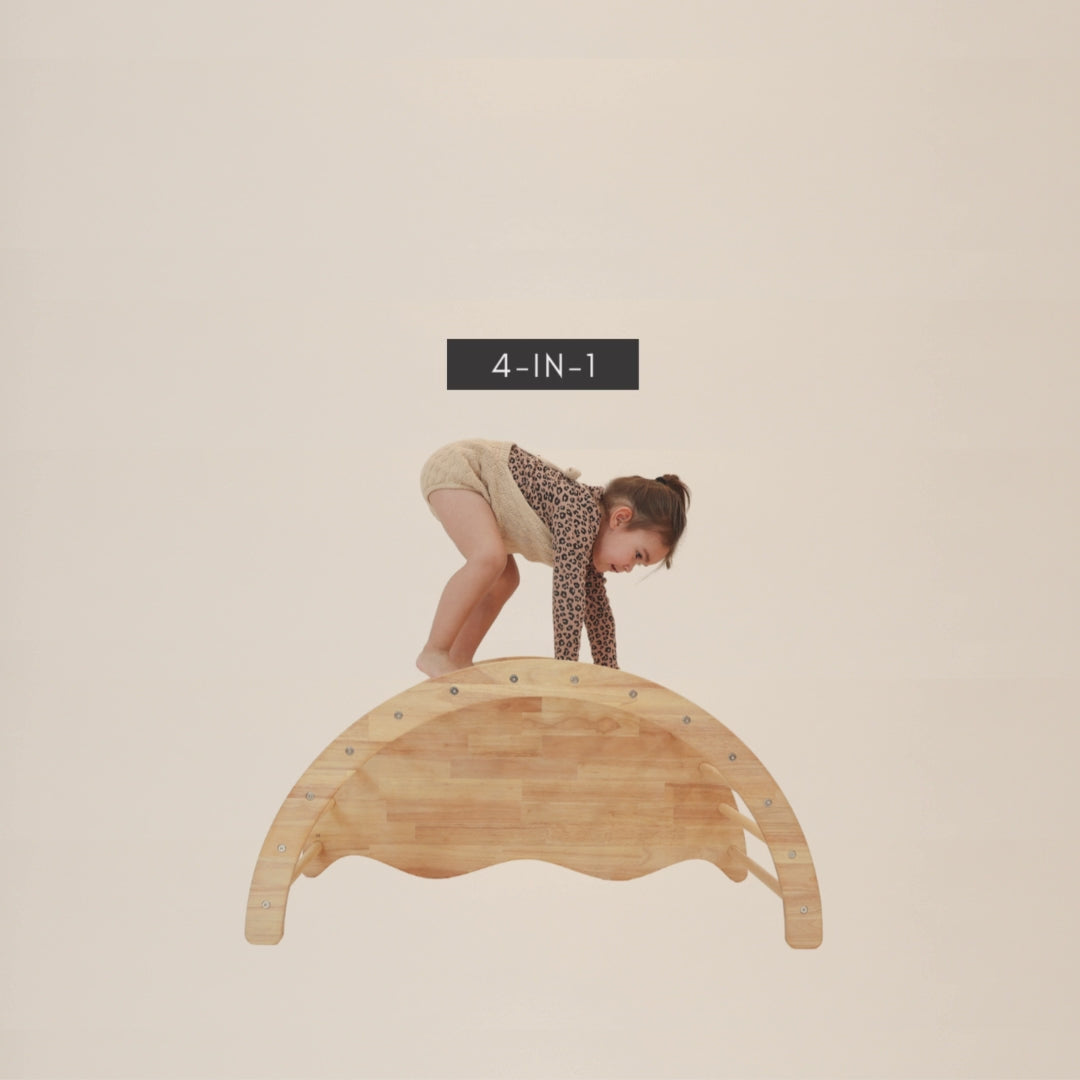 Pre-order - De stevige kindertafel met houten stoel, die je kind ook als klimboog kan gebruiken - een meubelstuk en motorisch speelgoed volgens Montessori in één. Gemaakt van lang gedroogd FSC-natuurhout is deze kindertafel bijzonder duurzaam en duurzaam. Geschikt als kindertafel met stoel vanaf 1,5 jaar, als klimspeelgoed voor kinderen van 1 - 4 jaar en vanaf de geboorte als slaapwip voor baby's.
